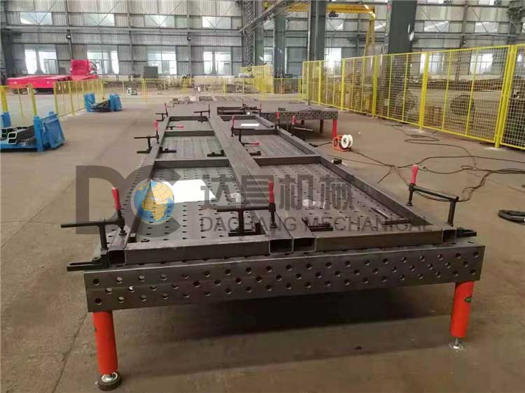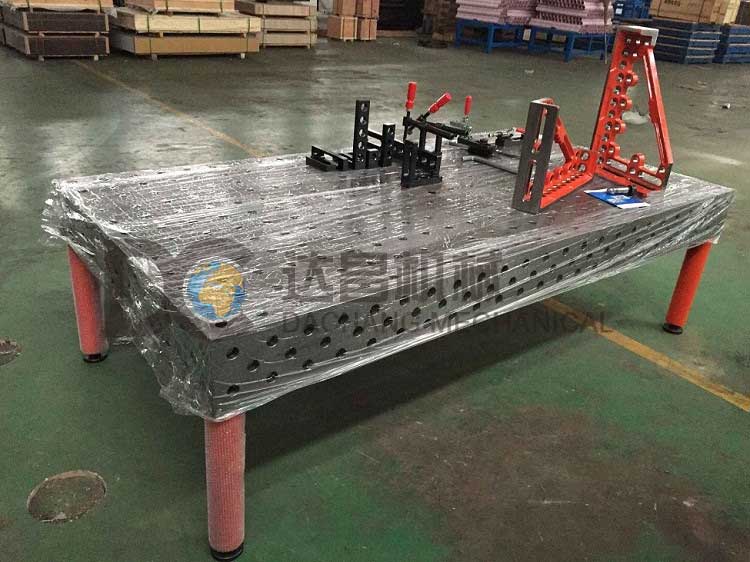 多孔三維焊接平臺特點 1經濟性每次產品變化而投入的專用工裝的費用時間幾乎可以不再花錢。裝置操作簡便。用戶可根據需要快速拼接出不同要求的工裝就像兒童玩拼裝式玩具一樣。 2多孔三維焊接平臺的承載能力高,鋼性穩(wěn)定,它的五個面均加工有規(guī)則的孔,并刻有網線。焊接平臺可方便地延伸和擴展,組合。經擴展的標準臺面可模塊化的定位和夾緊直接連接在一起。在安裝、調整和定位工件過程將柔性三維組合焊接工裝系統的通用功能展示的詳細,尤其在了大型工件方面的應用上。拼裝方式多樣,用戶只要充分發(fā)揮想象力,幾乎可達到任何專用夾具同樣的定位和夾緊功能。拼裝快速,裝拆方便;工作臺面可以根據工件形狀、大小進行拼裝組合。臺面上的刻度和模塊尺寸的設計,使操作工人不用量具就可以根據工件尺寸迅速搭出所需要的工裝。 3多孔三維焊接平臺再1噸左右集中載荷的作用下,其變形量只有0.553mm,而再均布載荷作用下,其變形量只有0.024mm,可以滿足絕大多數的焊接及裝配加工的需要,其組建的精度高,工作平臺定位孔中心公差保證在0.05mm以內。這種高精度將會反映在用戶所加工的產品中,因此此工作臺也可用作檢具的基準平臺。 4多孔三維焊接平臺的臺面有鑄鐵/鋼結構件/精密加工件/模塊化組件組合而成,其性能非常穩(wěn)定,如使用不當造成部件損壞時,也不用報廢整張臺,只要非常少的成本就可以更換單個部件。焊接平臺表面經過加工處理,在焊接過程中,僅需低廉的防飛濺液即可免除工作臺表面的焊接飛濺。 5模塊化所有組件分門別類,進行了標準化和系列化,互相匹配。選用較少的模塊,就可以實現各種快速定位和夾緊的功能。